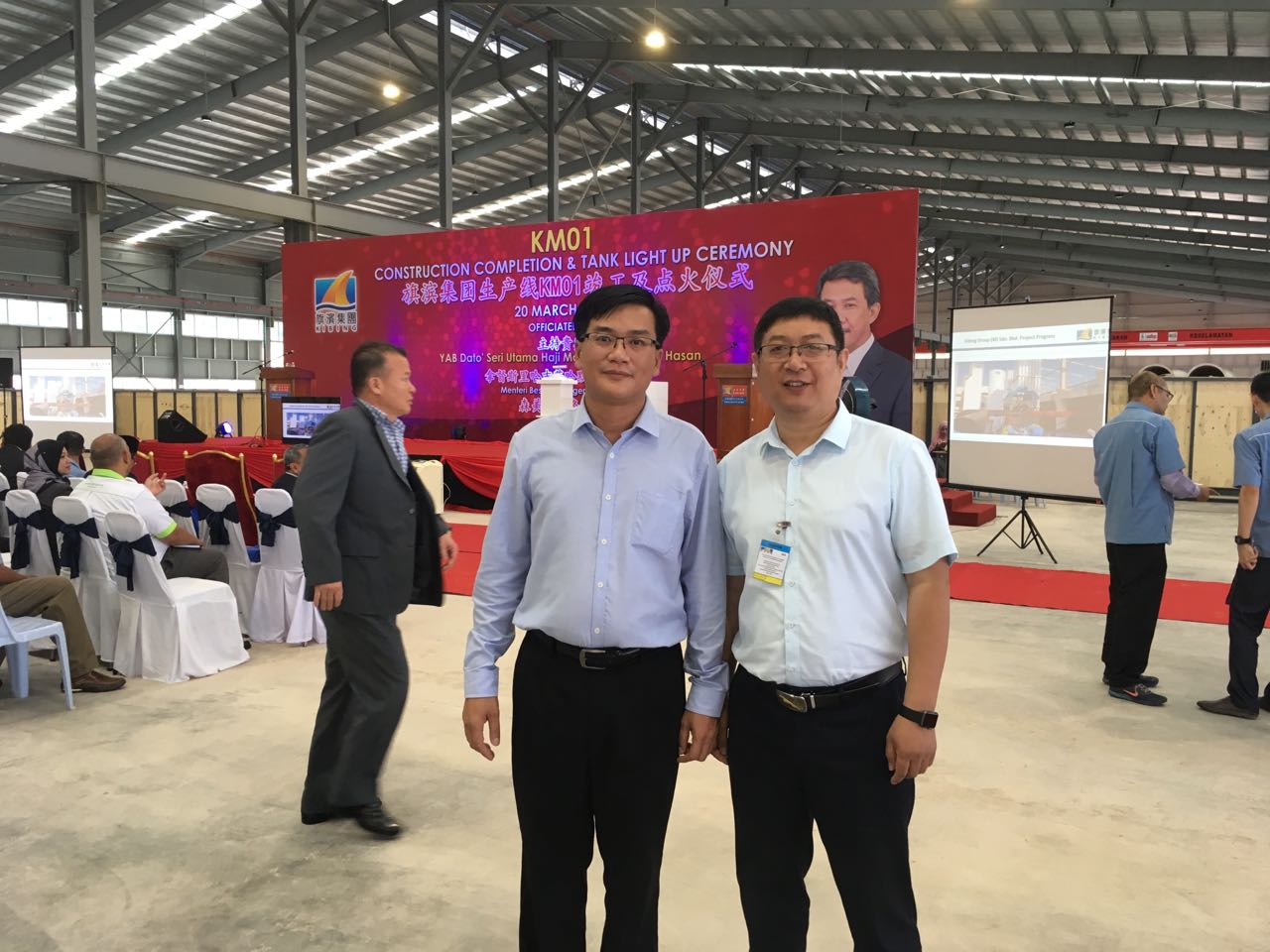 3月20日,玻機(jī)公司實(shí)施的旗濱集團(tuán)馬來西亞一線項(xiàng)目成功點(diǎn)火投產(chǎn),公司總經(jīng)理印文忠一行親自前往現(xiàn)場(chǎng)參加了點(diǎn)火儀式。