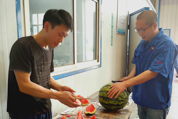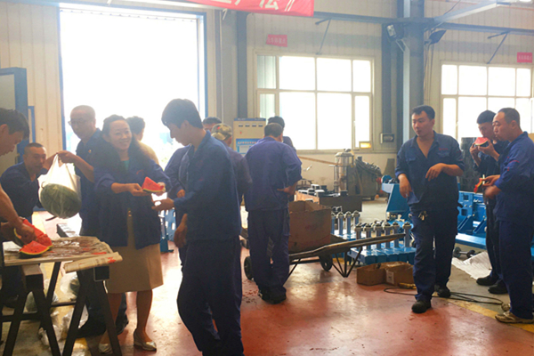 炎炎夏日,驕陽似火,一線職工依然堅守在生產一線。為了讓一線職工平安度夏,近日,玻機公司中層干部自愿捐款開展送清涼活動,助力職工戰高溫斗酷暑。中層干部代表將西瓜、冰糕送到生產車間,讓一線職工在揮汗如雨的工作現場就能消暑解渴。送清涼活動受到了一線職工們的廣泛好評。看似平常的西瓜、冰糕,不僅體現了公司中層干部密切聯系職工的工作作風,而且讓一線職工感受到了公司的滴滴關愛。