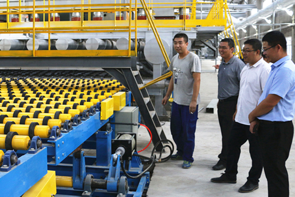 袁小平一行參觀了金宏陽公司新建的一窯二線玻璃引板的過程。該線的冷端部分是由玻機公司于2019年9月承接,公司上下全力克服新冠疫情導致的工期延誤,克服眾多技術難題,加強產品質檢力度,搶抓時間安裝設備,歷時11個月圓滿完成。參觀的過程中,玻機公司相關負責人對該項目在設計、質量、安裝等情況進行了總結與記錄。