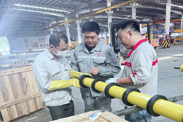 11月14日,玻機公司質檢部人員前往廣東明軒玻璃實業公司開展檢測和指導安裝。截至20日,已對全部在用輸送輥道輥子完成了跳動檢測。該輸送輥道由玻機公司在2014年生產制作,雖然已經投產使用9年,但其輥子跳動仍可滿足當時技術要求。21日開始指導廣東明軒公司職工給輥道輥子套膠圈。玻機公司帶去了最新自制的自動膠圈裝配機,降低了職工勞動強度,提高了套膠圈的效率,獲得了廣東明軒公司領導及員工的一致好評。