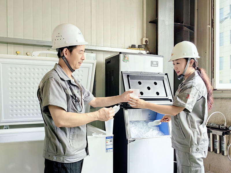 總經(jīng)理趙衛(wèi)朋在車間配備一臺全自動制冰機,用以改善夏季車間生產條件,這贏得了職工們的“大拇指”。他安排專人提前將冰塊裝入密封塑料杯,并保存在冰柜中,以便發(fā)放到一線職工手中。