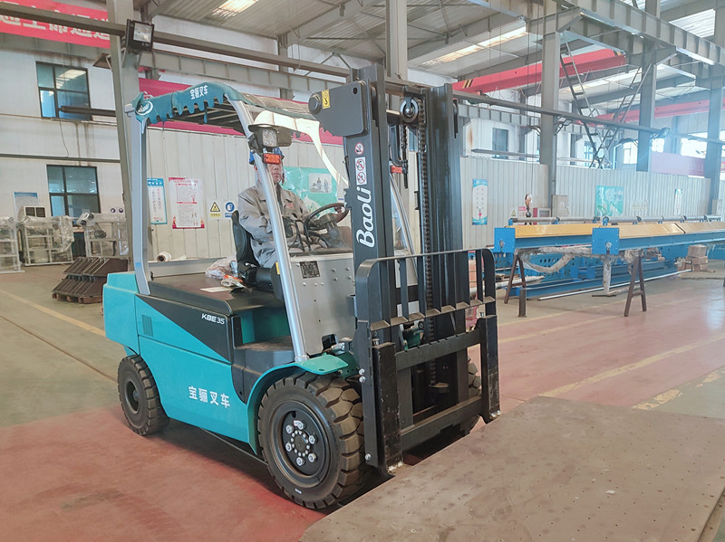 這是公司通過市場調研,最終確定性價比、實用性較強的寶驪鋰電叉車。與傳統燃油叉車相比,新叉車不僅維護成本低,節能環保,而且極大地提高了車間搬運效率,助力完成項目建設。